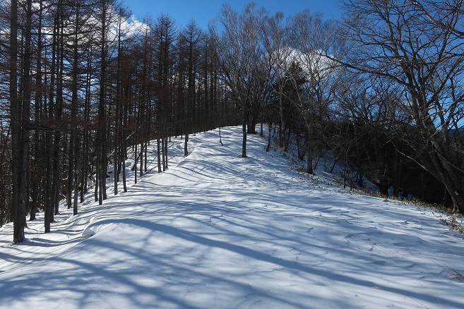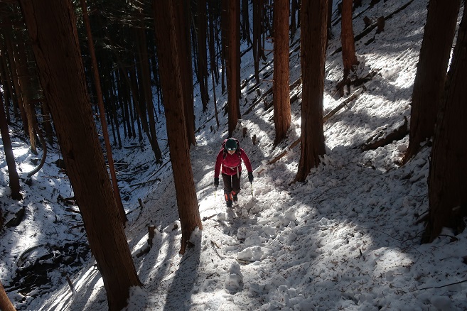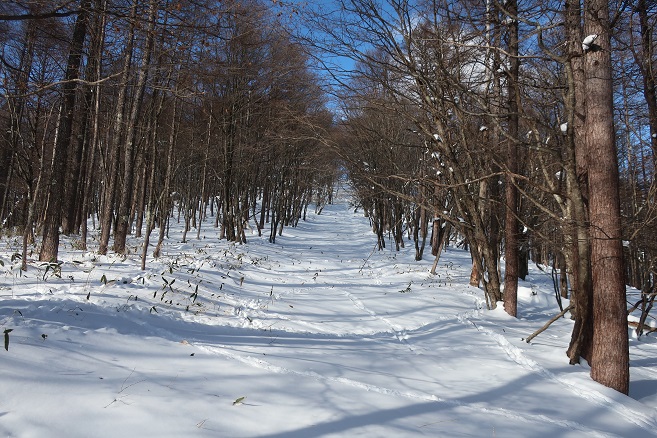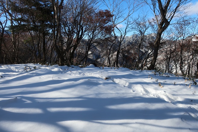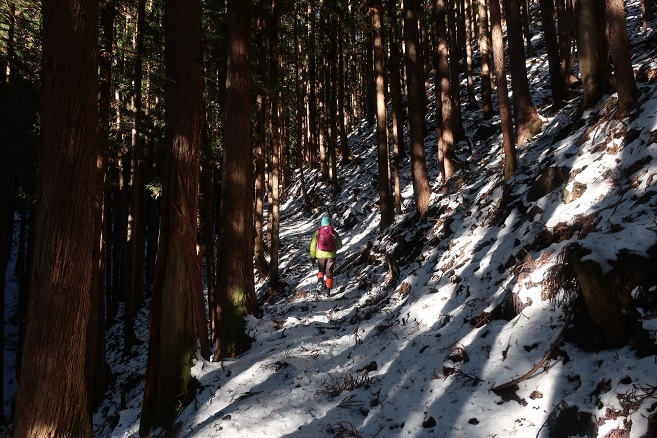 足尾の寂峰の小法師岳(1593m)に数日前に降り積もった新雪を踏んで登った。 登山口(取り付き)には何も目印や標識はなかったが、地形図どおりの登山道の道型と愛好家の付けたピンクテープが随所に見られ、時間は掛ったものの登頂は容易だった。 予想どおり積雪はこの時期にしては多かったが、鹿のトレースを利用して最後までワカンは履かずに登った。 尾根の通過点のような特徴のない小法師岳の山頂の位置は諸説あるようだが、山名板と三角点があった所から100mほど先の地形図上の山頂にも山名板が見られた。 今日はあいにく冬至だったが、日の長い時期に小法師岳から県境の尾根上の法師岳まで足を伸ばしてみたいと思った。