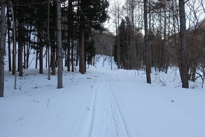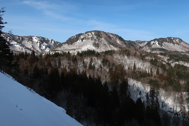 帰路は登りの半分以下の時間で取付きまで下れたので、大中子山も継続して登ろうかとも思ったが、さすがに午後に入ってから雪が緩んできたので自重した。 下山後に明日の天気予報をチェックすると、晴れは昼前までという予報に変わってしまったので、今後計画している宮床湿原への取付きの下見をしてから、その付近にある短時間で登れそうな明神岳を登ることにした。