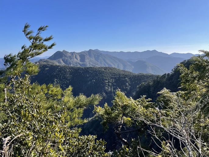 和歌山県田辺市の半作嶺(893m*関西百名山)を登った。 猫の額ほどの狭い岩塔の山頂からは、幾つもの山々を連ねて東方向の大塔山(1122m)へ伸びる長い稜線が見渡せた。