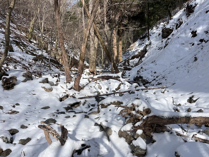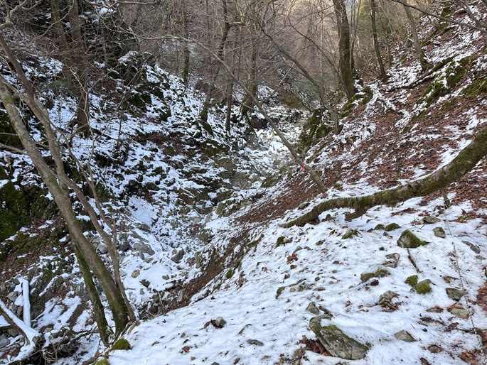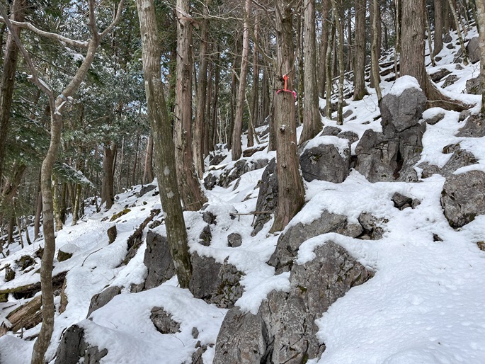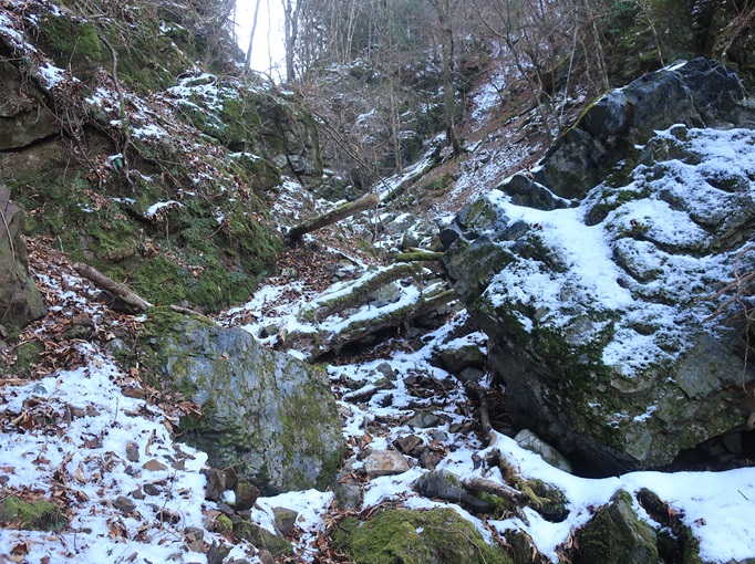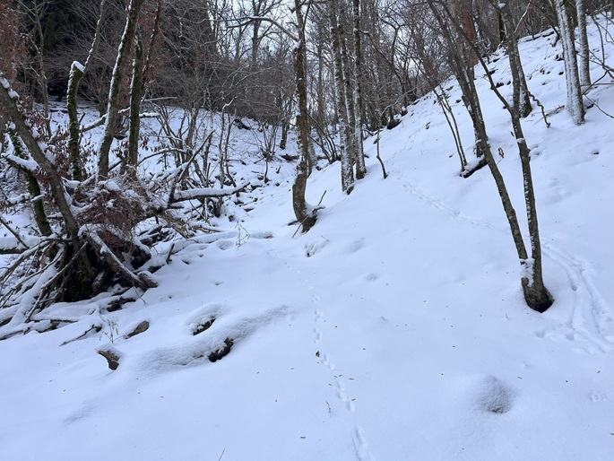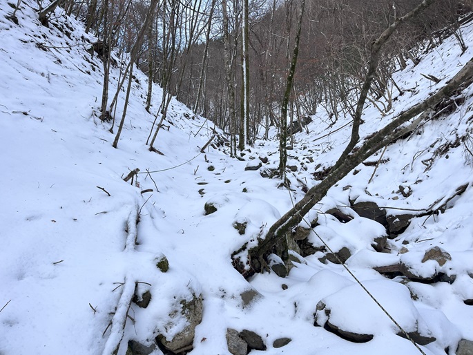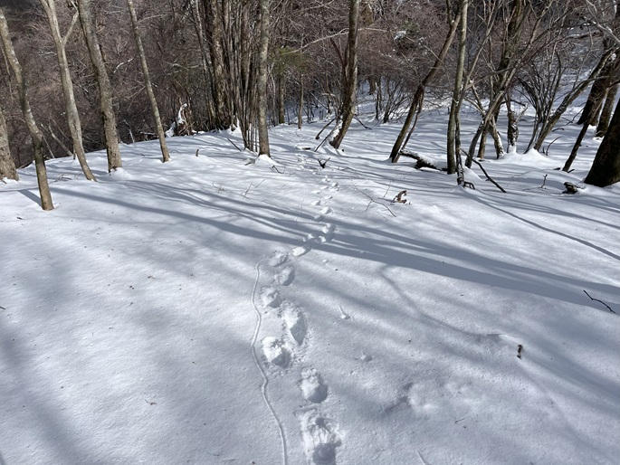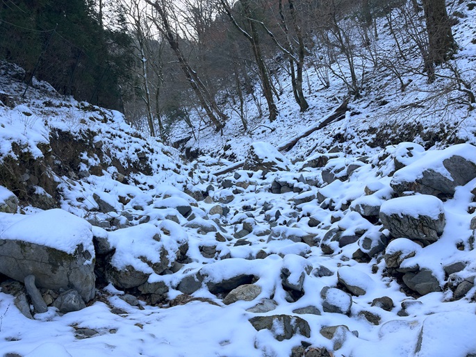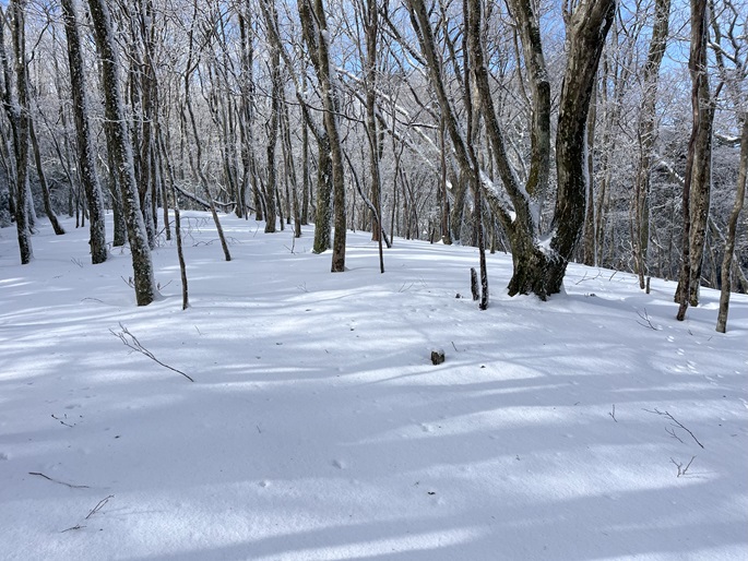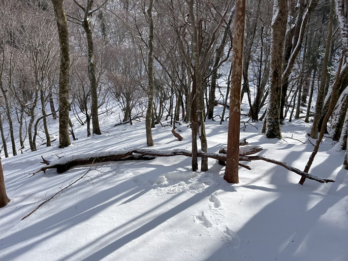 熊本県山江村・相良村の仰烏帽子山(1302m*日本の山1000*九州百名山)を登った。 元井谷登山口へアプローチする林道は昨今の水害で崩壊していたため3キロほど歩いた。 登山口から涸れた沢を辿る登山道も土石流により荒れていてた。 九州に大雪が降ってから5日が過ぎたが、予想どおりトレースはなく膝下の軽いラッセルとなった。 予報どおり天気は良かったが、霧のため山頂からの展望が冴えなかったことが惜しまれた。