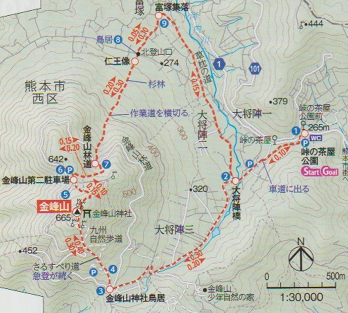 熊本県熊本市の金峰山(665m*日本の山1000)を登った。 1時間足らずで登れる山だが、直登する急峻で荒々しい『さるすべり道』と緩やかなスイッチバックの『九州自然歩道』という二つの登山道があり、登りは前者を下りは後者を利用して歩いた。 昼前から雨予報の天気だったが、金峰山神社(蔵王権現社)が建つ山頂からは雲仙岳・阿蘇山・国見岳などが遠望された。