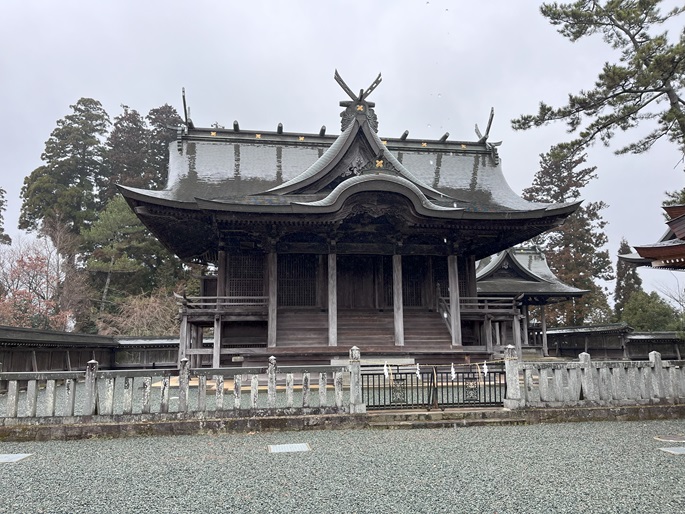 下山後は熊本地震で倒壊した重要文化財の楼門などの修復をほぼ終えた阿蘇神社を観光した。