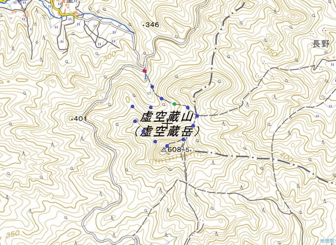木場登山口 〜 新道・旧道分岐 〜 虚空蔵山 〜 新道・旧道分岐 〜 木場登山口 (周回)