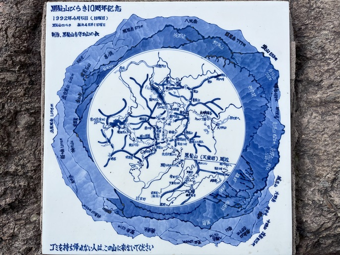 佐賀市有田町・伊万里市・武雄市の黒髪山(516m*日本の山1000*九州百名山)を青螺山(618m)を経て登った。 麓に有田焼や伊万里焼の窯元があるため、山頂に置かれた展望案内板は焼き物だった。
