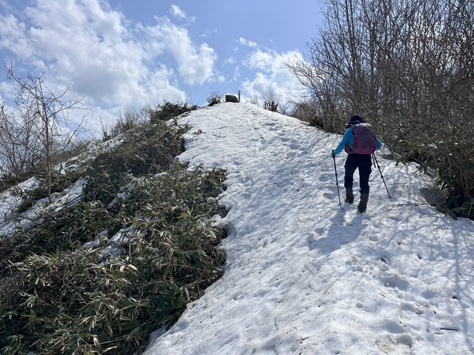 青森県階上町・岩手県洋野町の階上岳(740m*日本の山1000*岩手百名山)を登った。 低山ながら予想以上に残雪が多かったが、八戸市街から近いことで登山者やトレースも多かった。