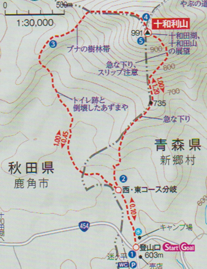 迷ケ平登山口 〜 東西コース分岐 〜 十和利山 〜 東西コース分岐 〜 迷ケ平登山口 (周回)