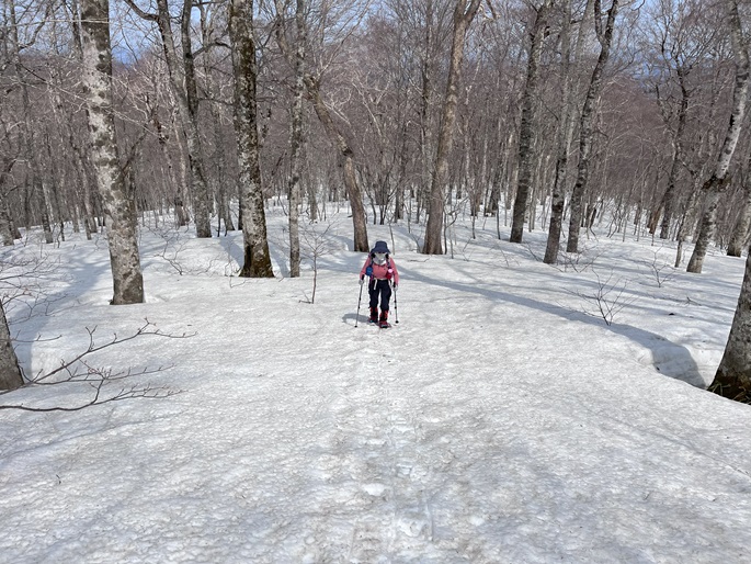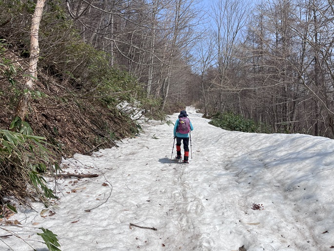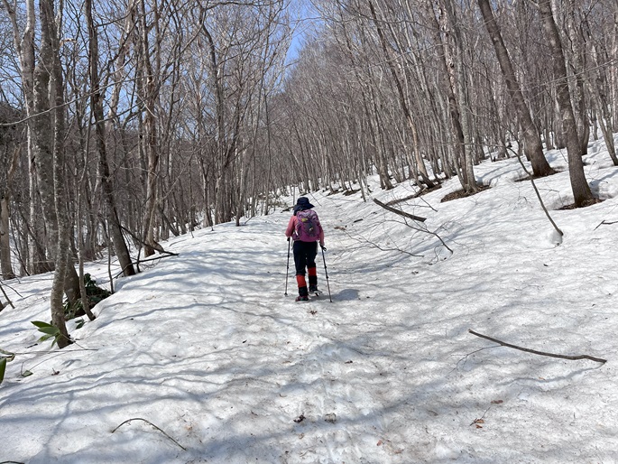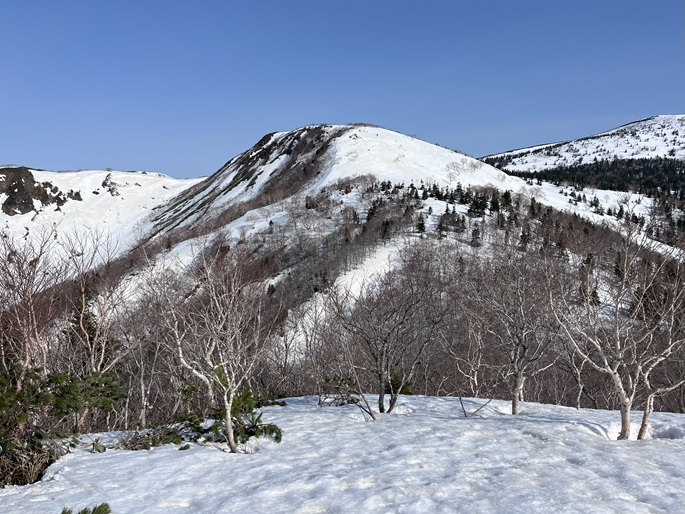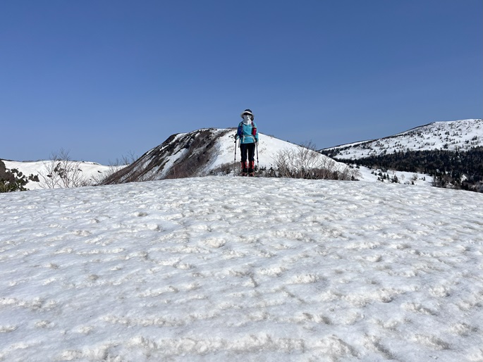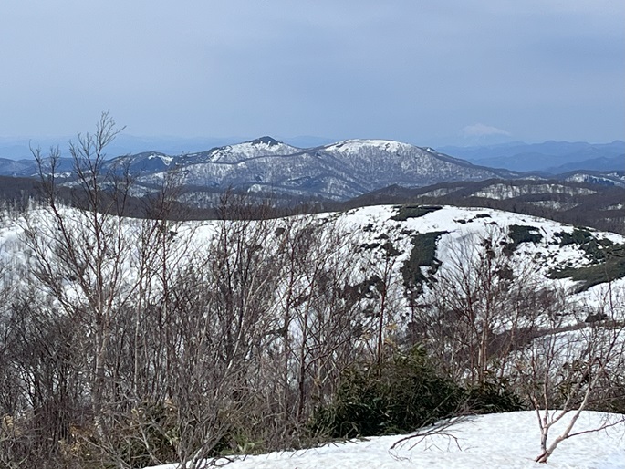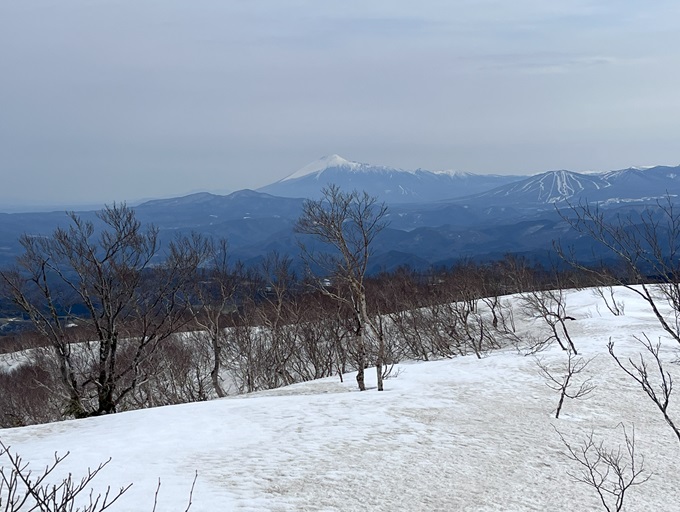 岩手県雫石町の鎌倉森(1317m*岩手百名山)を登った。 登山道がないため専ら残雪期に登られている岩手山の衛星峰で、眼前の岩手山や秋田駒ケ岳など山々の展望が素晴らしかった。 盛岡市街から近いため週末のトレースが濃く、登り下り共にツボ足で歩けた。