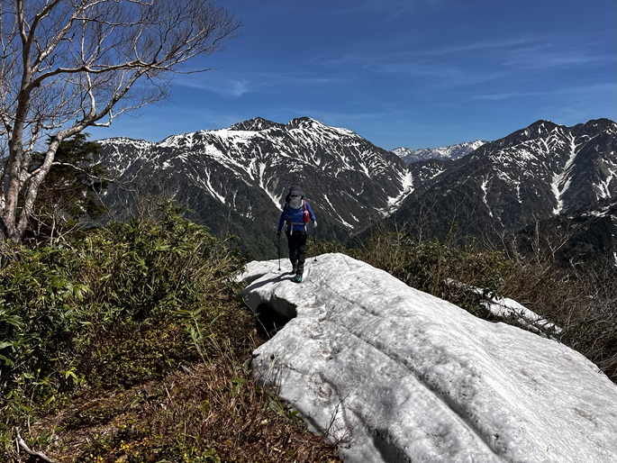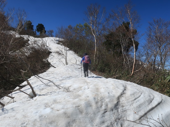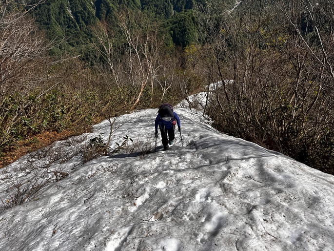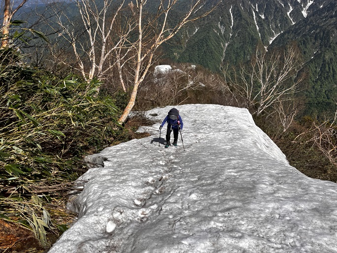 富山県上市町のクズバ山(1876m*富山の百山)を中山(1255m*富山の百山)を経て登った。 中山はハイキング感覚で手軽に登れる山で、山頂からは剱岳の展望が良かった。 中山からクズバ山への登山道は破線程度と思っていたが、急坂が延々と続く尾根には要所要所にロープが張られていた。 核心部の山頂直下の急斜面には雪がなく登山道を登れたので助かった。 山頂からは指呼の間の剱岳の展望が素晴らしく、遭難事故として記憶に新しい大日岳の巨大な雪庇や立山も見えた。 東小糸谷登山口への周回路の途中で見たニリンソウの大群落が印象に残った。