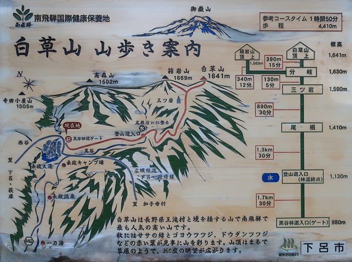 岐阜県下呂市・長野県大滝村の白草山(1641m*岐阜百山)を箱岩山(1669m)と寺田小屋山(1505m*岐阜百山)を結んで登った。 たおやかな笹原となっている白草山の広い山頂からは眼前の御嶽山や小秀山の展望が良かった。