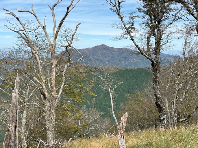 徳島県那賀町の権田山(1605m*四国百名山)を登った。 地形図に登山道は記されているが、登山口からの踏み跡は終始薄かった。 山頂からは一ノ森越しの剣山の眺めが良かった。