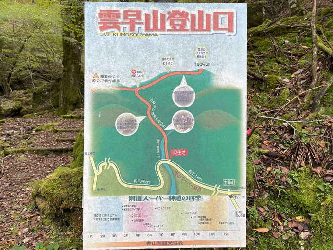 林道駐車地 〜 登山口 〜 高丸山分岐 〜 雲早山 (往復)