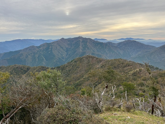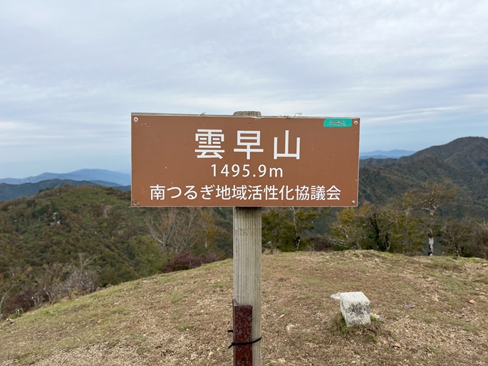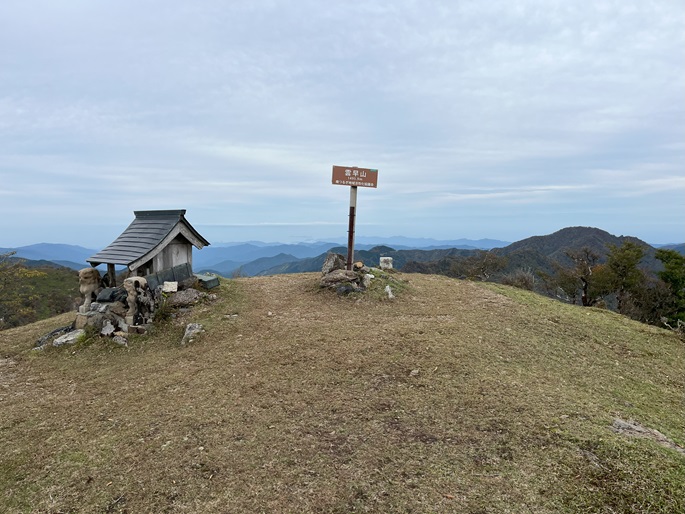 徳島県那賀町の雲早山(1496m*日本の山1000*四国百名山)を登った。 曇天ながら雲早神社が置かれた無木立の山頂からの展望は良かった。