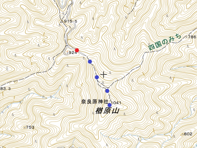 登山口(湯の谷林道終点) 〜 楢原山 (往復)