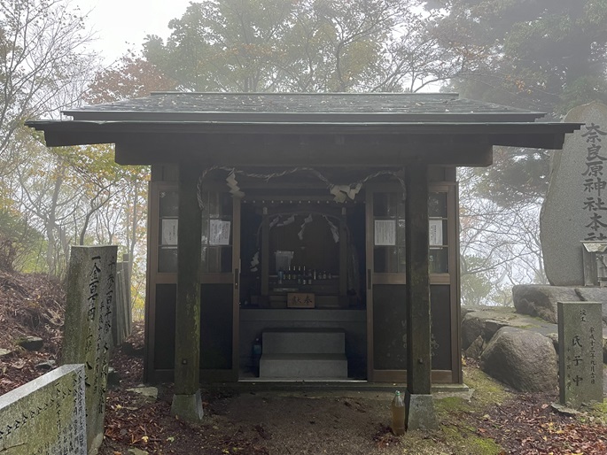 愛媛県今治市の楢原山(1041m*日本の山1000*四国百名山)を登った。 山頂は雑木に囲まれて展望がなく、牛馬の守護神とされる奈良原神社が建っていた。