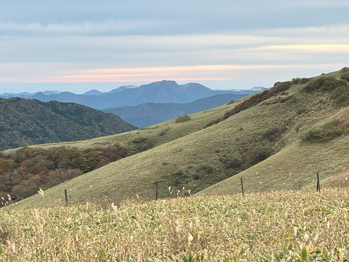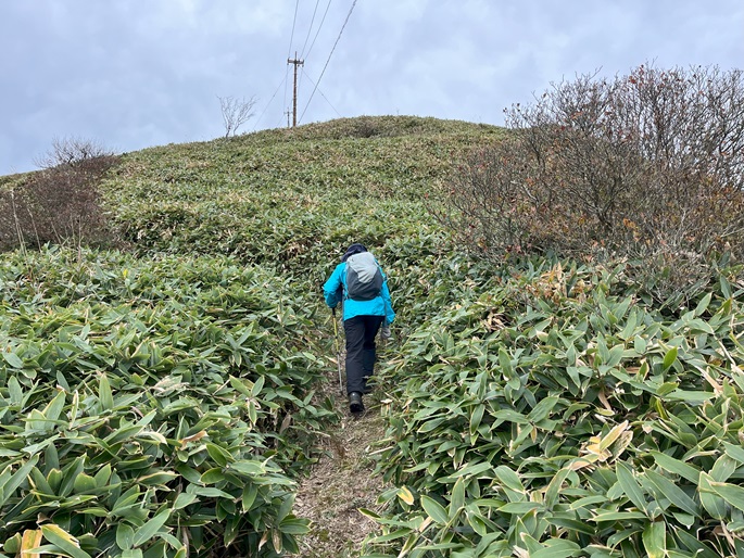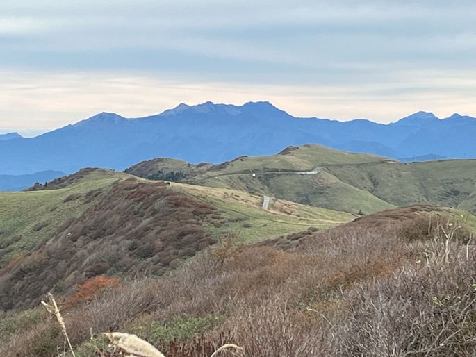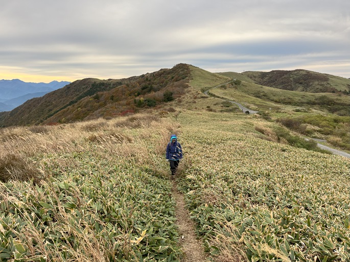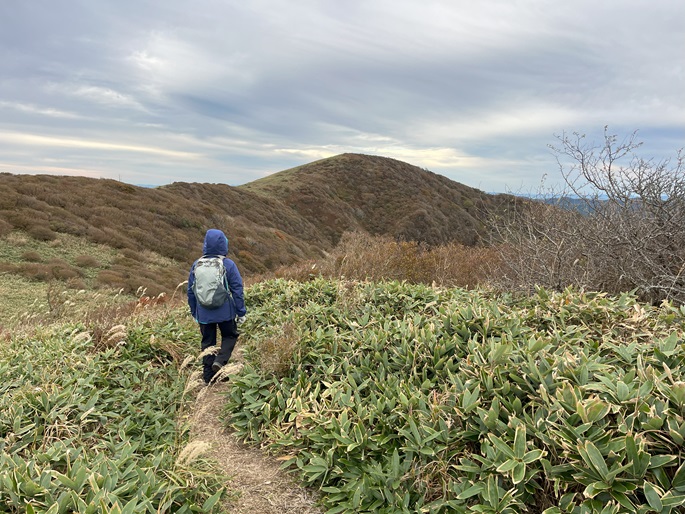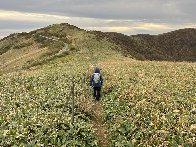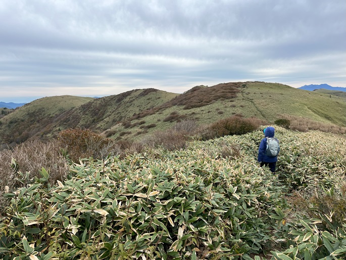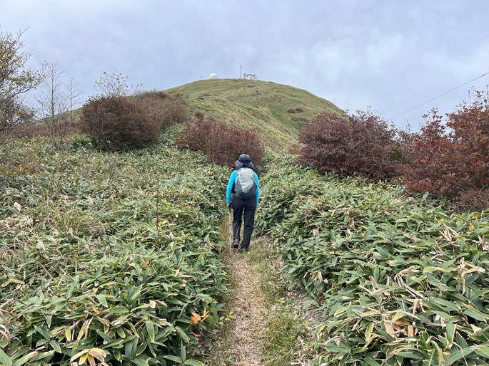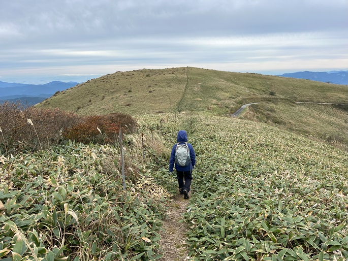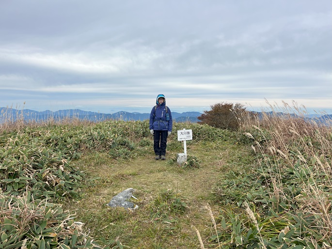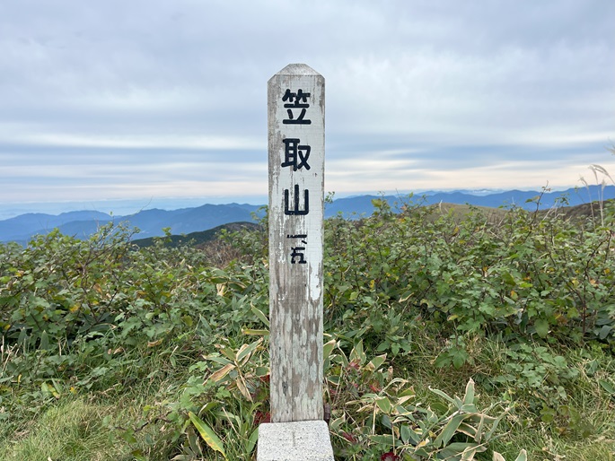 愛媛県久万高原町・内子町の笠取山(1562m*日本の山1000)を大川嶺(1525m*四国百名山)を経て登った。 両山共にかつては放牧が行われていたというたおやかな山容で、山頂付近まで県道(328号線)が通じている。 登山口から終始笹原の道を歩き、曇天ながら石鎚山系の山々の展望が良かった。