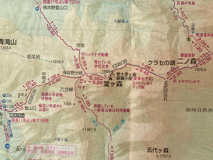 梅ケ市 〜 登山口 〜 堂ケ森 〜 五代の分れ 〜 二ノ森 〜 鞍瀬ノ頭 〜 五代の分れ 〜 堂ケ森 〜 登山口 〜 梅ケ市 (往復)