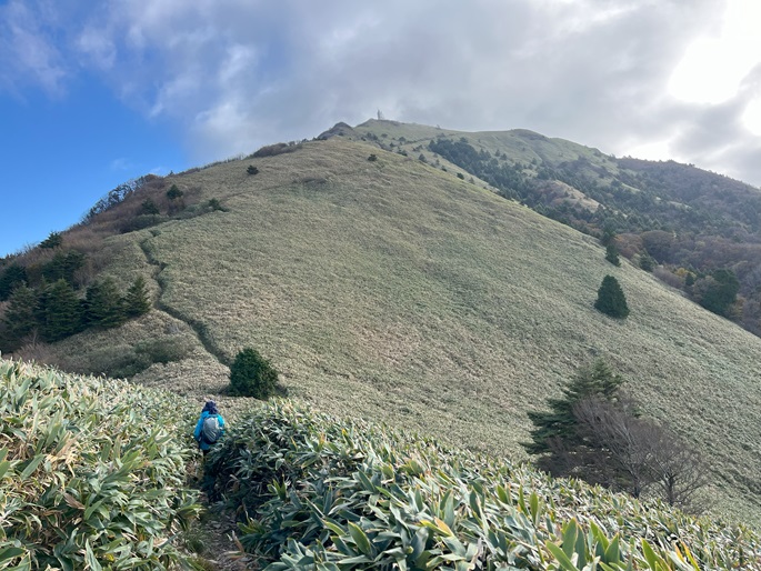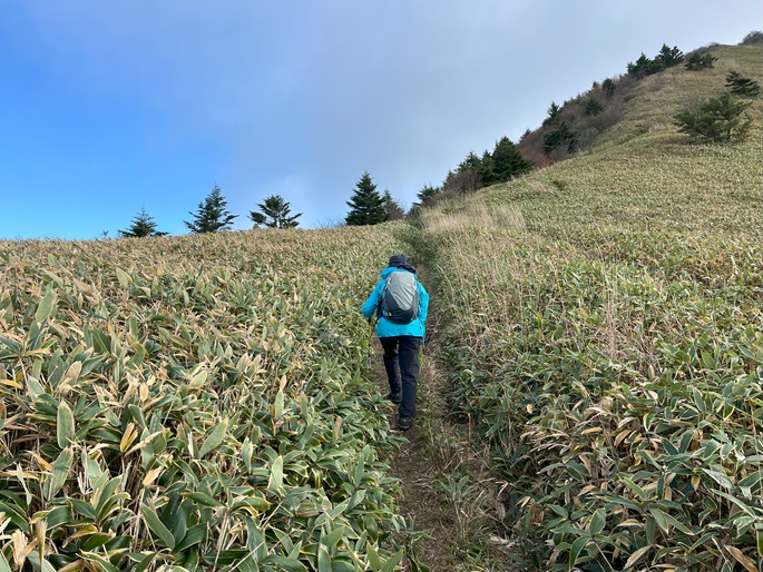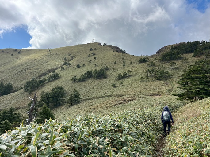 愛媛県久万高原町・西条市の二ノ森(1929m*日本の山1000*四国百名山)を堂ケ森(1689m*四国百名山)を経て登った。 雲や霧の出入りが多く一喜一憂を繰り返したが、一等三角点が置かれた二ノ森の山頂からは石鎚山南壁の眺めが良かった。 堂ケ森と二ノ森の間の笹原の稜線は開放的で印象に残った。