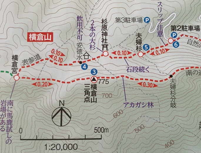 表参道登山口 〜 夫婦杉分岐 〜 横倉山(三角点) 〜 横倉宮 〜 杉原神社 〜 表参道登山口 (周回)
