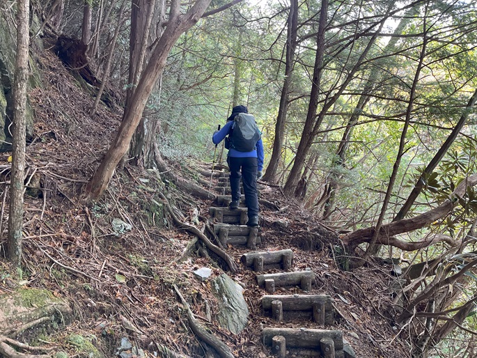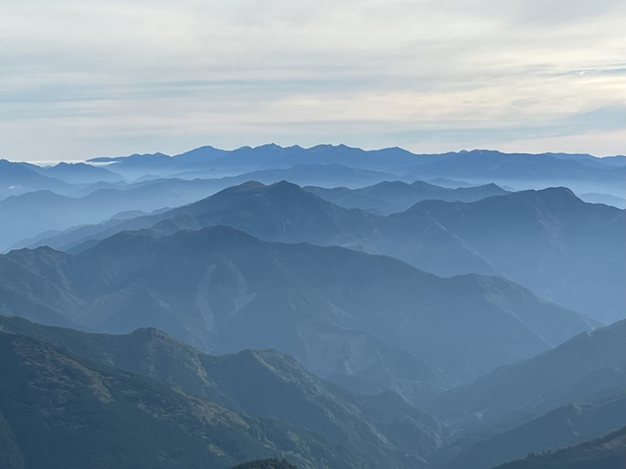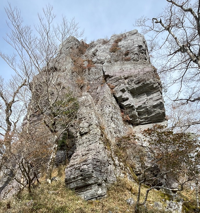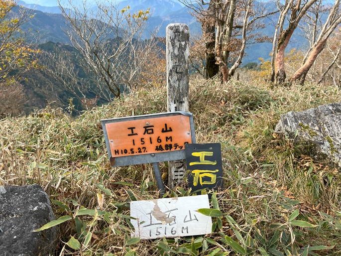 高知県本山町・大豊町の奥工石山(1516m*四国百名山*一等三角点百名山)を登った。 冬の瀬から登山口にアプローチする9キロの林道は半分以上が未舗装の悪路だったがギリギリ車の腹を摺らず通行出来た。 一等三角点が置かれた地味な奥工石山の山頂よりも山頂直下の高度感に満ちた岩塔(ユルギ岩)の方が展望は勝っていた。