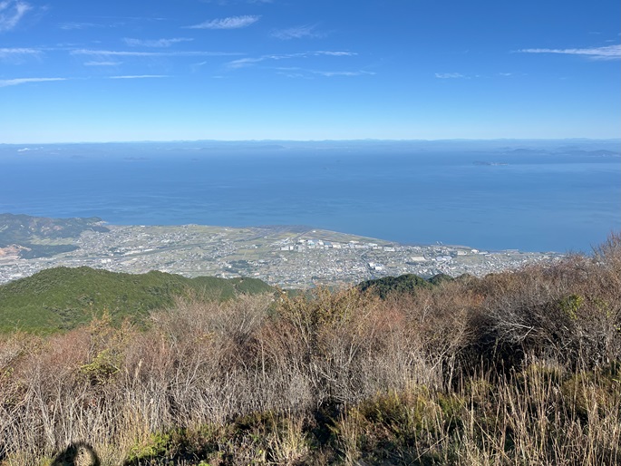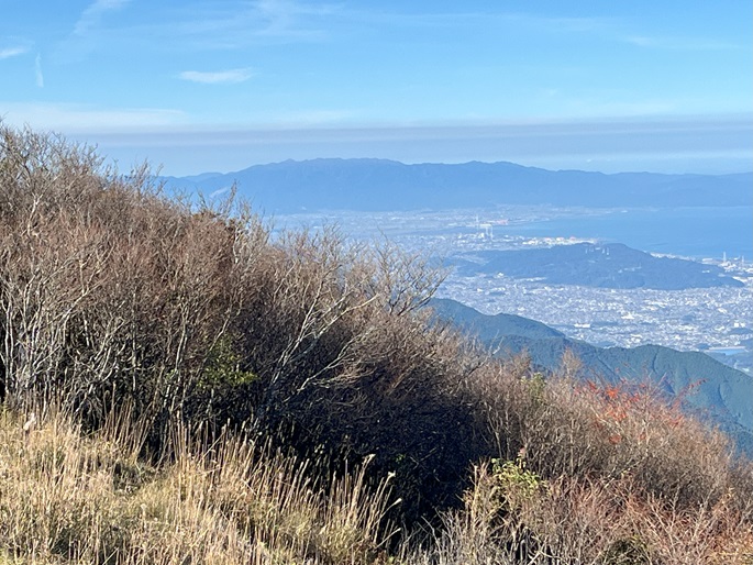 愛媛県四国中央市の赤星山(1453m*日本の山1000*四国百名山)を尾根続きの豊受山(1247m*四国百名山)と結んで周回して登った。 赤星山へは沢沿いを登る整備されたルートで滝が多く見られ、最上部の千丈滝は5段あって一番見応えがあった。 草原状の広い山頂は眼下の瀬戸内海側に大きく展望が開け、伊予三島や新居浜の市街地のみならず大山や蒜山も遠望された。