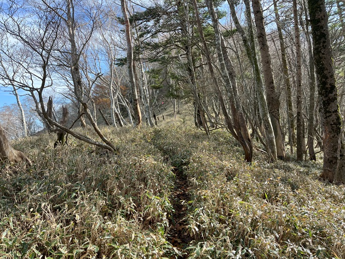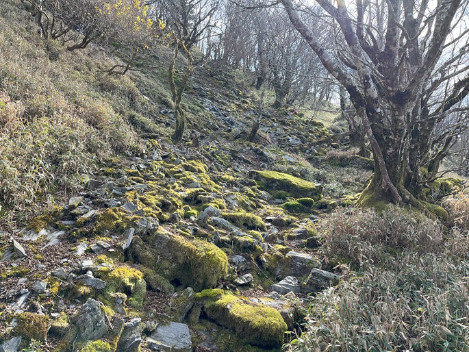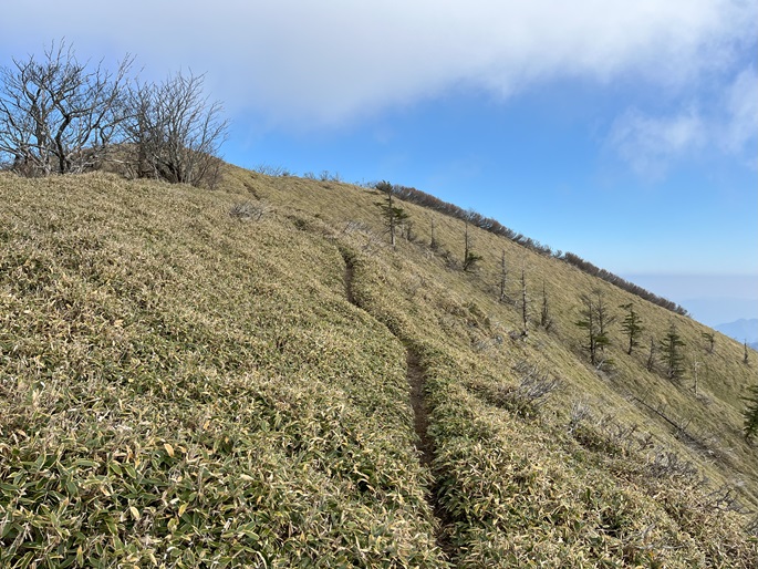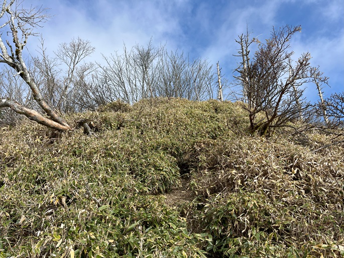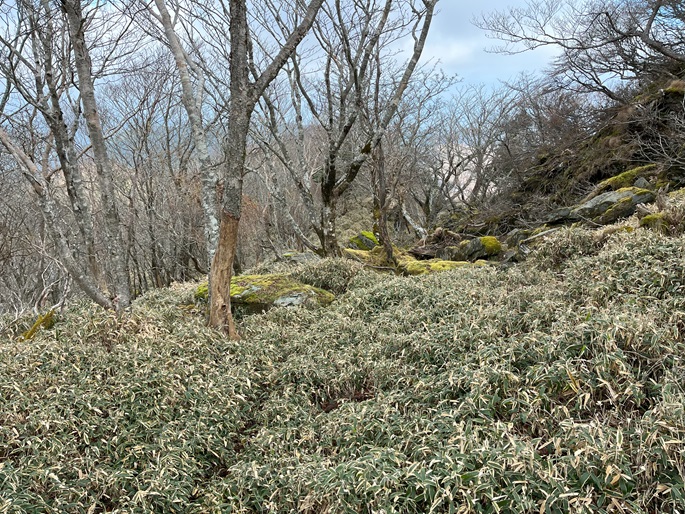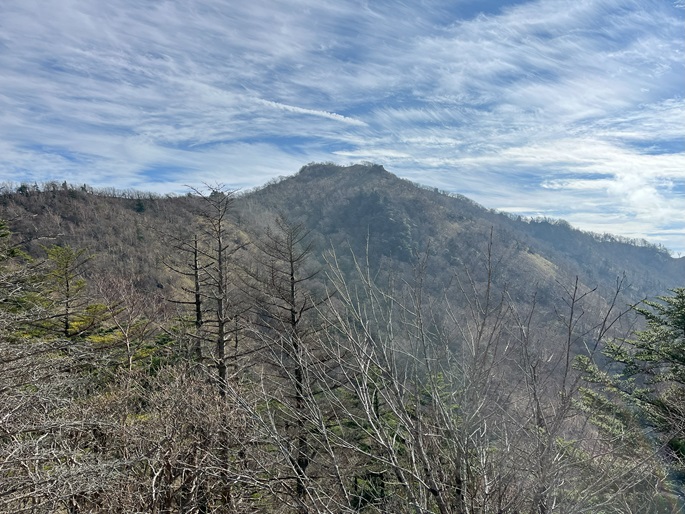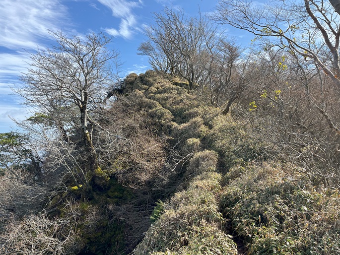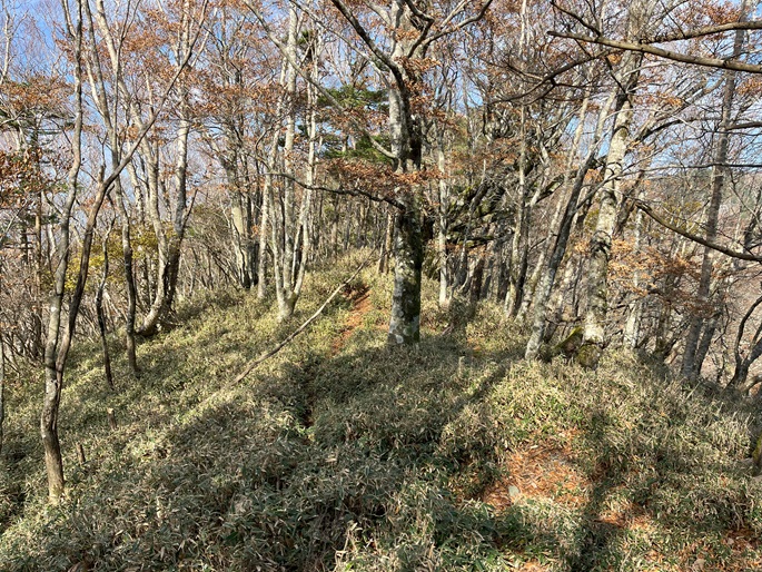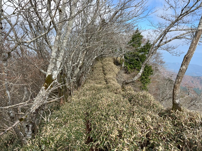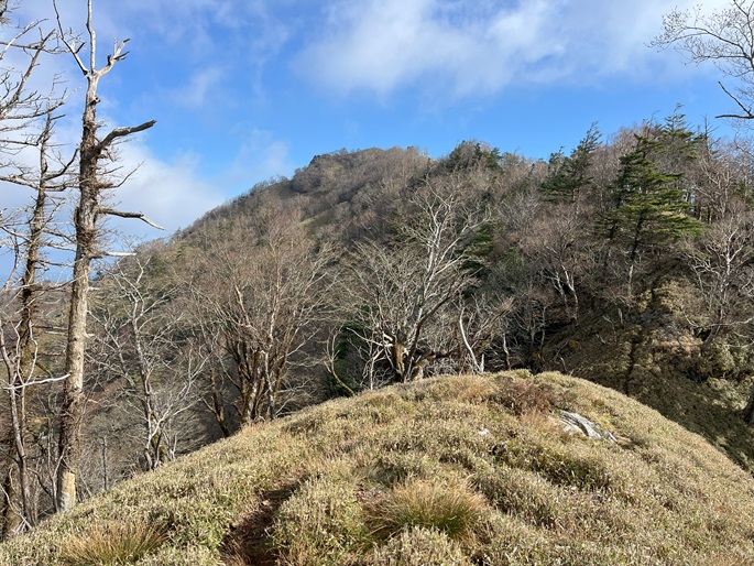 徳島県三好市の石堂山(1636m*四国百名山)を矢筈山(1848m*日本の山1000*四国百名山)を経て登った。 矢筈山の山頂からは逆光ながら昨日縦走した剣山から三嶺への長大な稜線が遠望された。