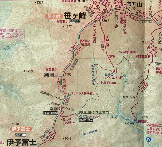 登山口 〜 桑瀬峠 〜 寒風山 〜 笹ケ峰 (往復)