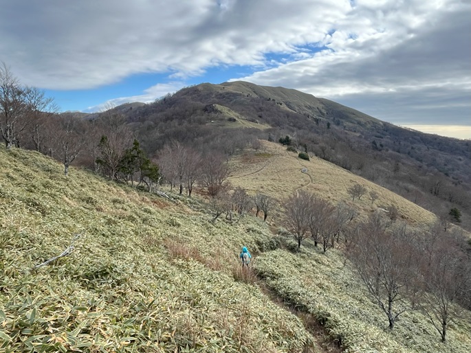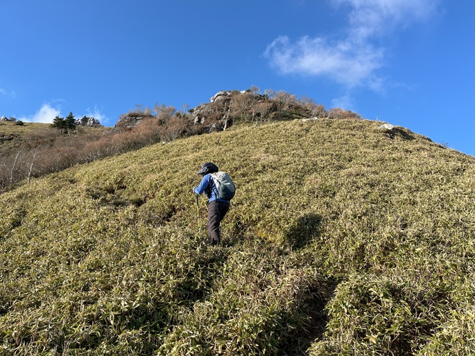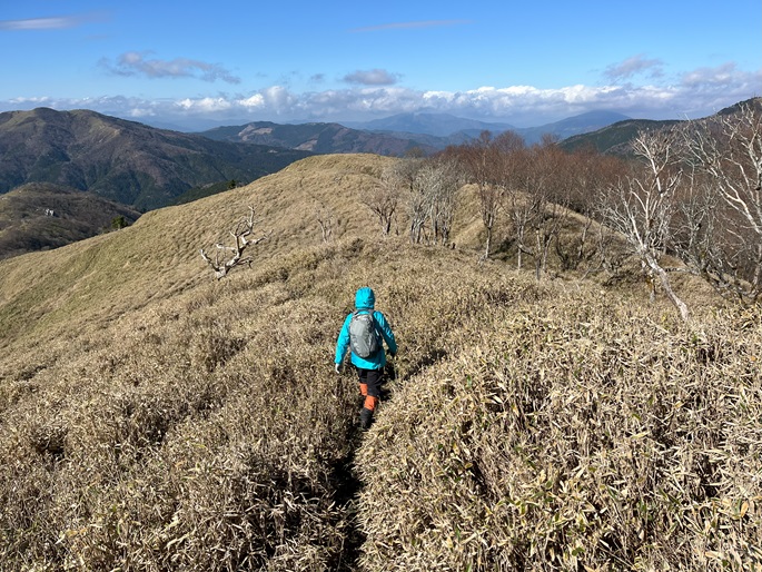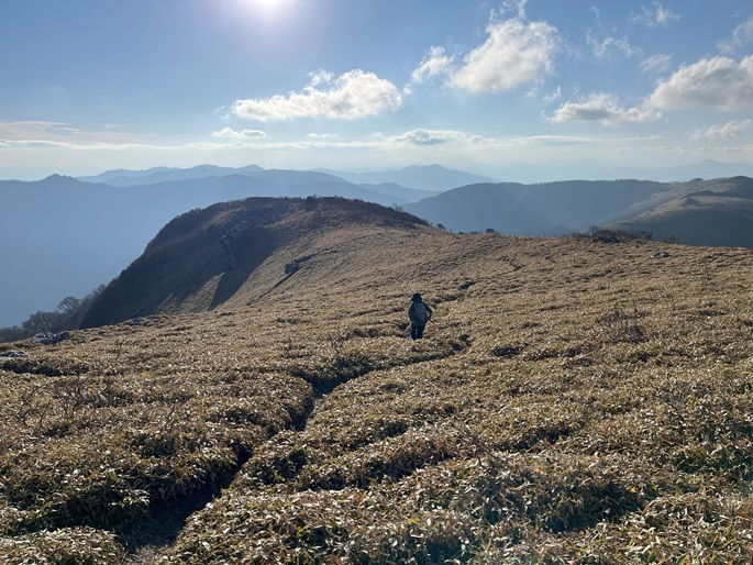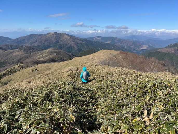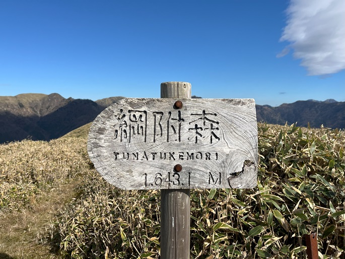 高知県香美市・徳島県三好市の綱附森(1643 m*日本の山1000*四国百名山)を登った。 登山道は笹に覆われている区間が長かったが、幸運にも朝方は曇っていたことで朝露に濡れることはなかった。 山中で唯一すれ違った地元の猟友会のメンバーから親子の三頭の熊の目撃情報を聞いた。 展望に優れた山頂からは剣山や次郎笈が遠望され、天狗塚・三嶺・白髪山などの山々の眺めが良かった。