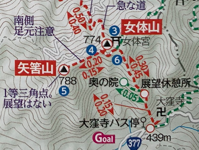 大窪寺 〜 女体山 〜 矢筈山 〜 矢筈山南峰(最高点) (往復)
