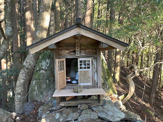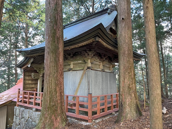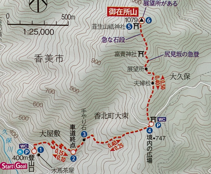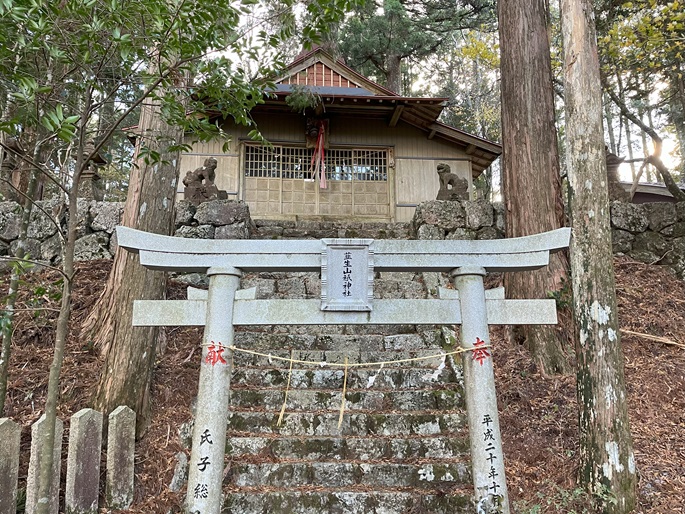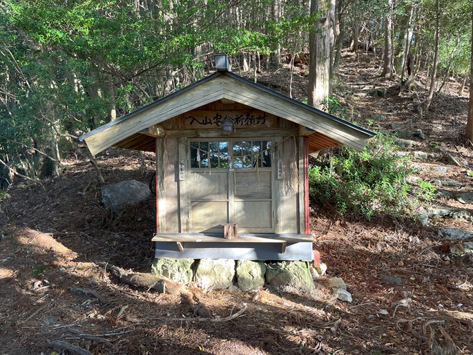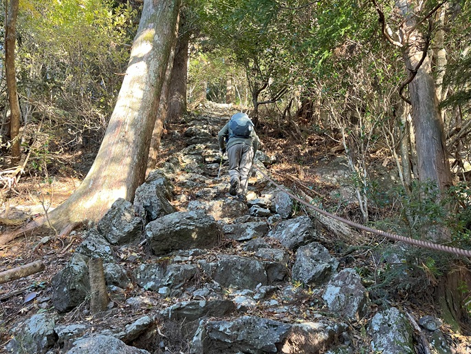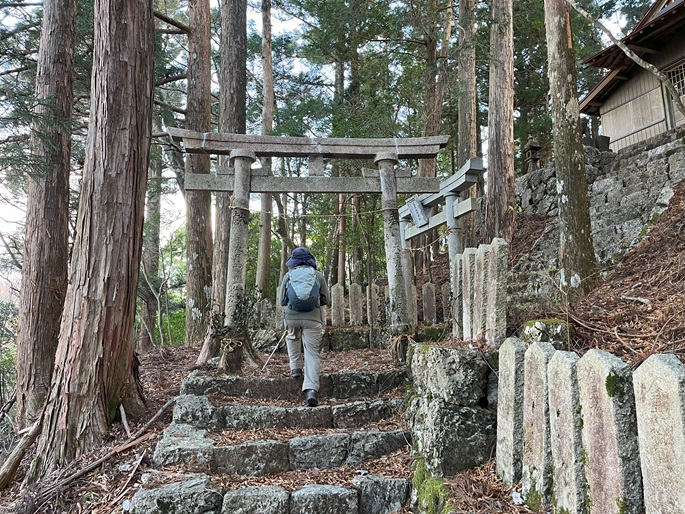 高知県香美市の御在所山(1079m*日本の山1000*四国百名山)を登った。 林道が通じている韮生山祇神社の入口から急傾斜の長い参道が神社が建つ山頂まで続いていた。