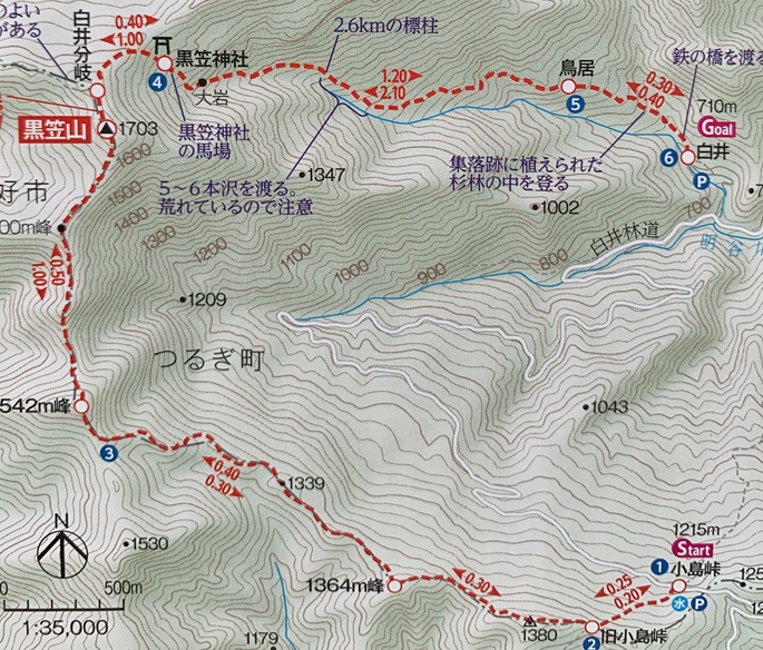 白井登山口 〜 黒笠神社 〜 黒笠山 (往復)
