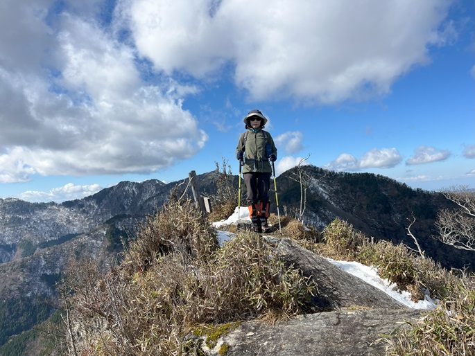 徳島県三好市・つるぎ町の黒笠山(1703m*四国百名山)を登った。 『阿波のマッターホルン』と呼ばれる鋭峰で、登山道の傾斜が急な区間が長かった。 猫の額ほどの狭い山頂からの展望は高度感があって素晴らしかった。