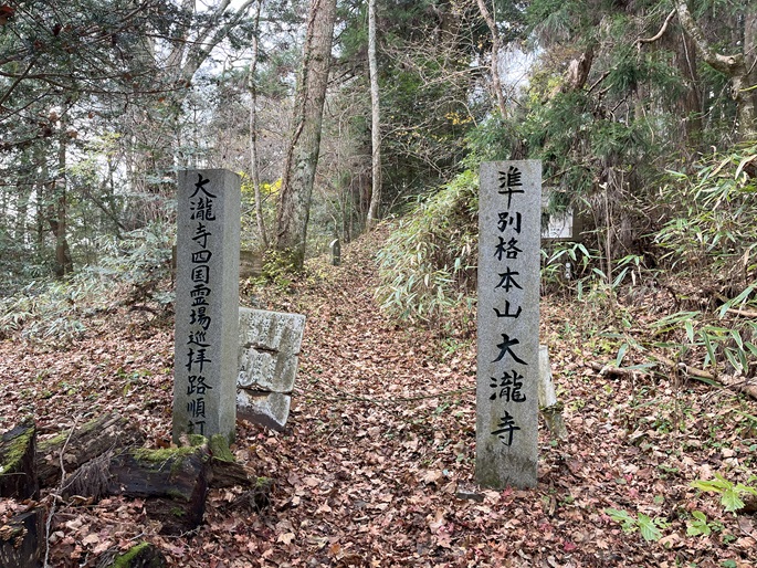 香川県高松市・徳島県美馬市の大滝山(946m*四国百名山)を登った。 山頂直下に建つ西照神社(大滝寺)へ通じる県道(106号線)があるため、登山道を歩く区間は短かった。 大滝山の山頂は神社の裏手にあり、神社から三角点がある城ケ丸(943m)への登山道には四国八十八ケ所霊場の寺名を刻した石碑が88基置かれていた。