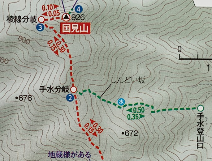 手水登山口 〜 手水分岐 〜 国見山(雪光山) (往復)