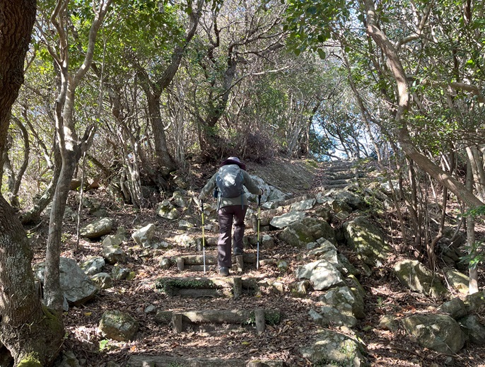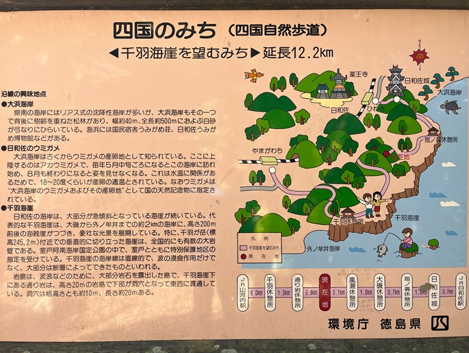 徳島県美波町の千羽ケ岳(245m*四国百名山)を千羽富士(128m)を経て登った。 『千羽海崖』という急傾斜の海崖の最高点で、整備された遊歩道の随所から高度感のある太平洋や海崖の眺めがユニークだった。