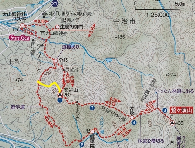 大山祇神社 〜 分岐 〜 安神山 〜 鷲ケ頭山 (往復)