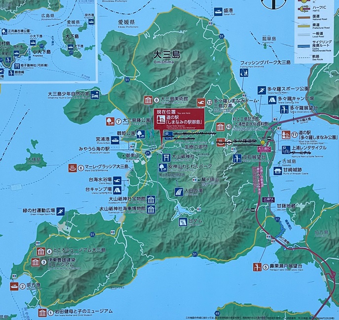 愛媛県今治市の鷲ケ頭山(436m*日本の山1000*四国百名山)を安神山(267m)を経て登った。 愛媛県の最北に位置する大三島の最高峰で、登山口の大山祇神社へは『しまなみ海道』を通行してアプローチした。