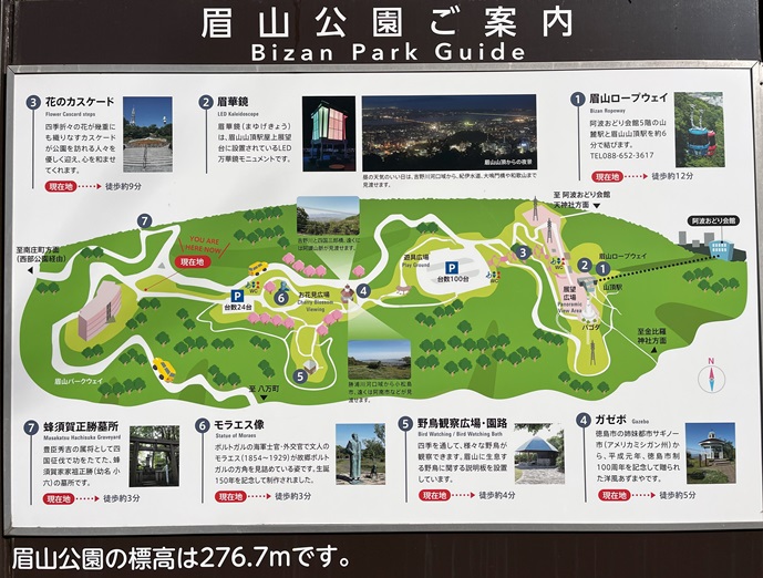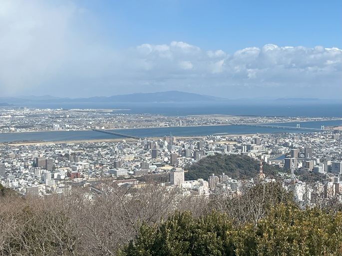 徳島県徳島市の眉山(290m*日本の山1000)を登った。 徳島市の中心部に位置する丘のような独立峰で、最高点がある西端は緑濃い森の中で展望はなく、一等三角点が置かれた東端は徳島市街を俯瞰する公園となっていた。
