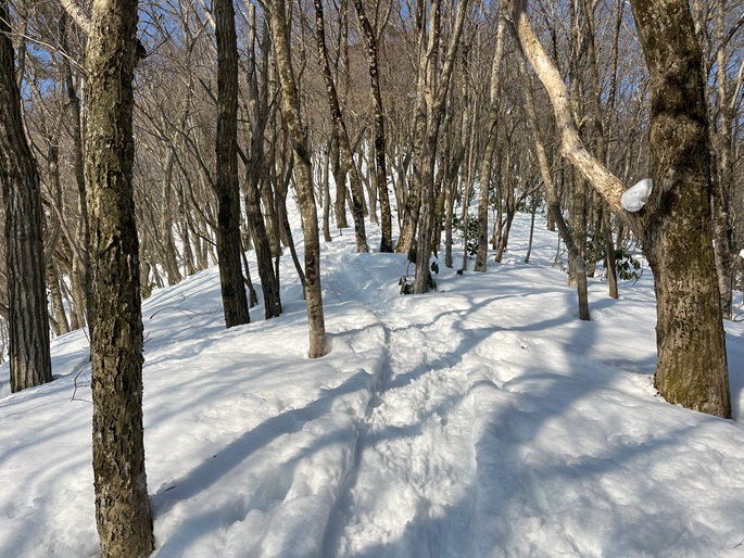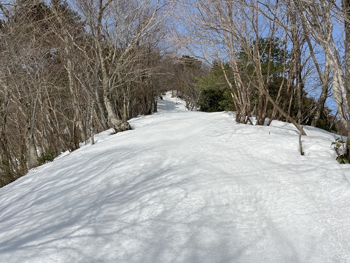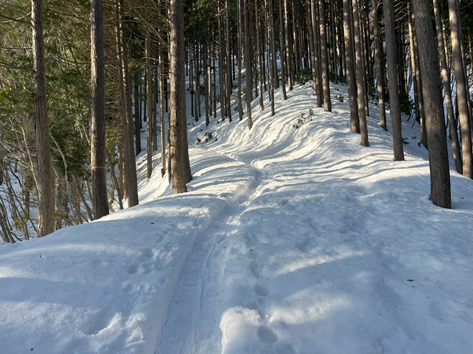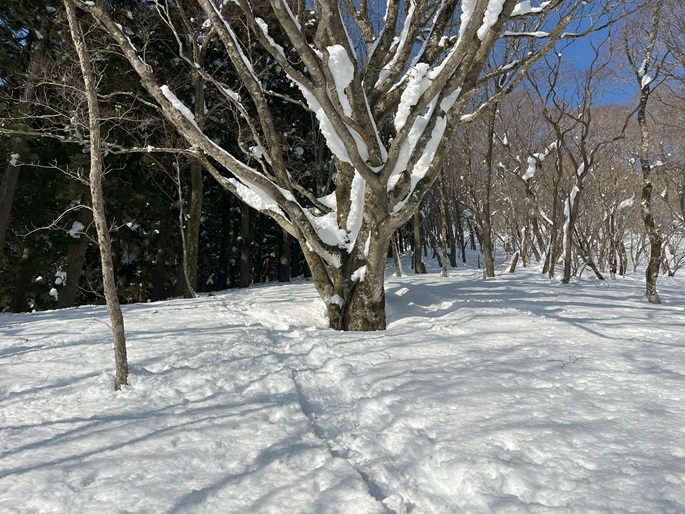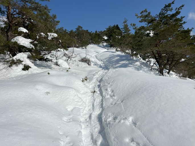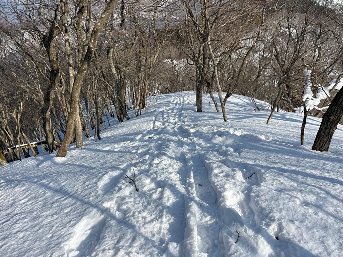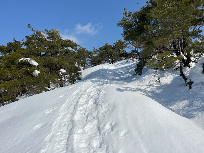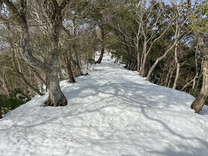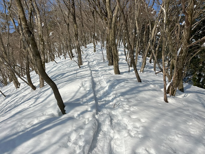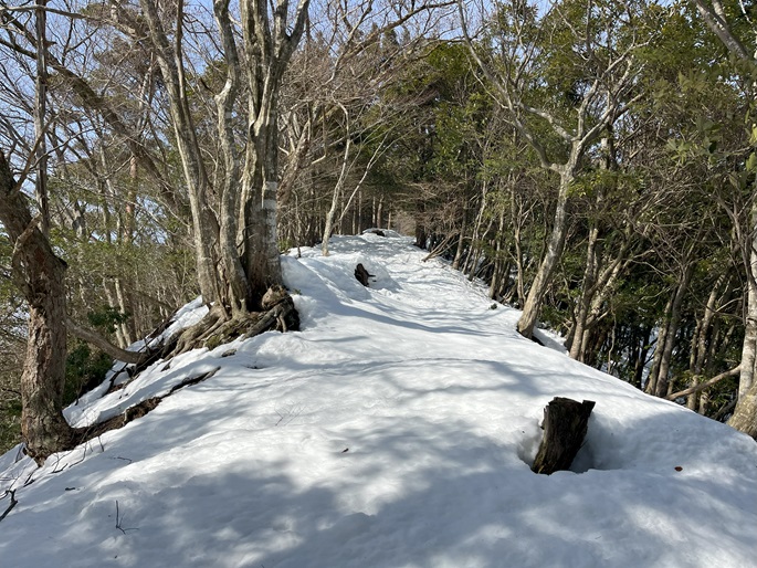 林道駐車地 〜 除雪終了点 〜 尾根取付 〜 大江山 〜 鳩ケ峰 〜 鞍部 〜 除雪終了点 〜 林道駐車地 (周回)