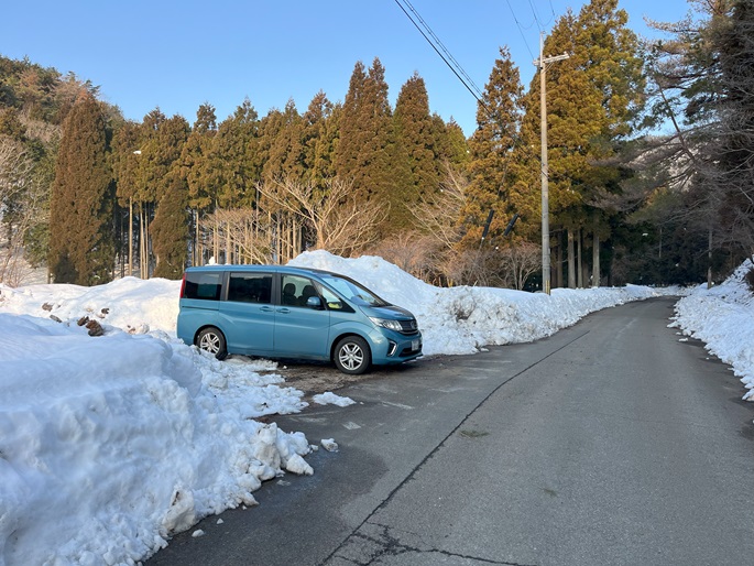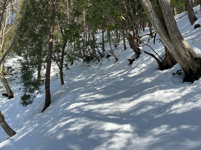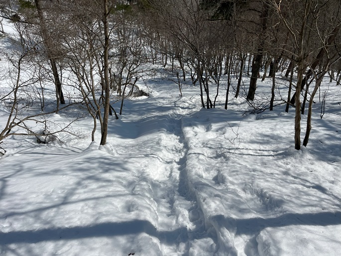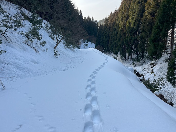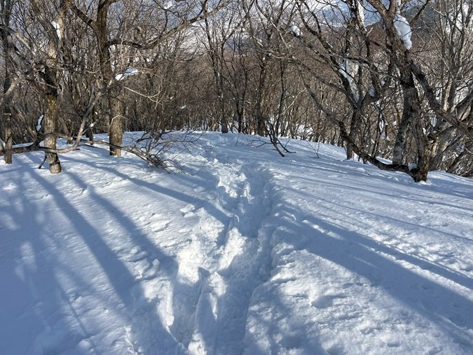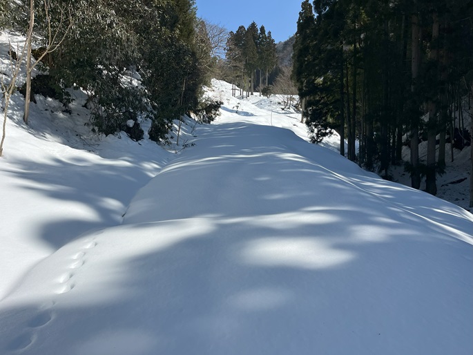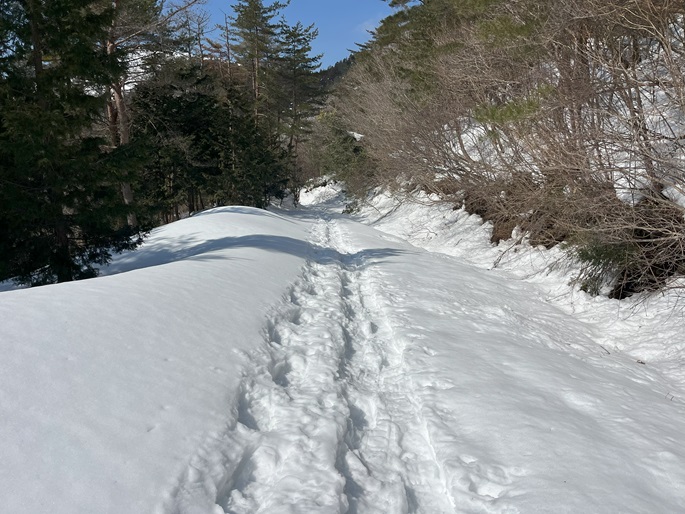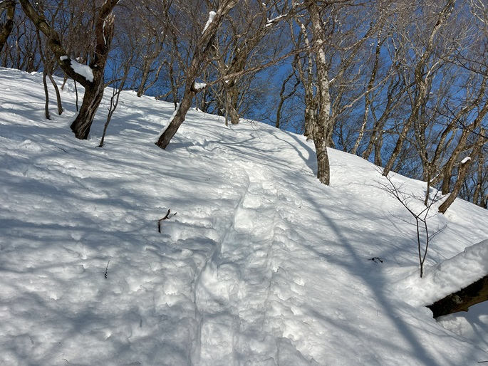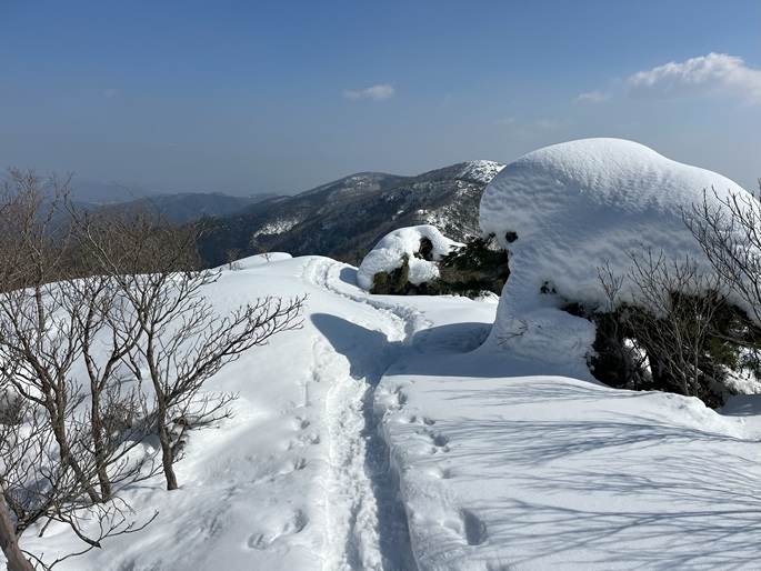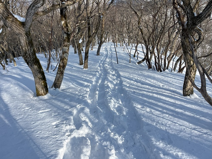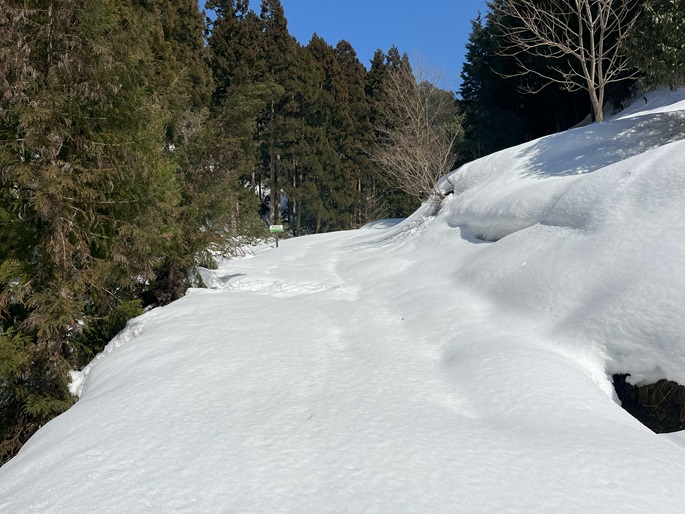 林道駐車地 〜 除雪終了点 〜 尾根取付 〜 大江山 〜 鳩ケ峰 〜 鞍部 〜 除雪終了点 〜 林道駐車地 (周回)