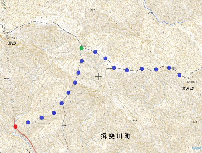 冠山冬期登山口 〜 1262m地点 〜 若丸山 (往復)