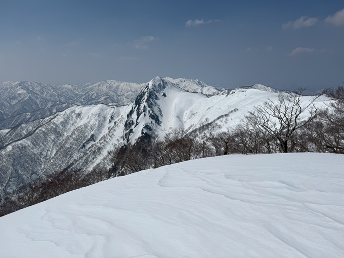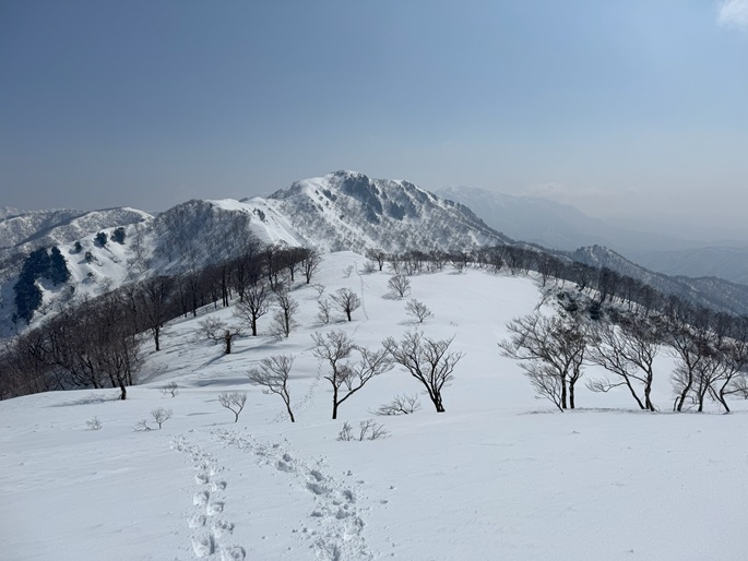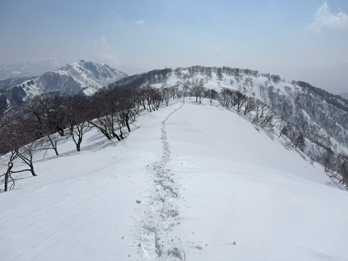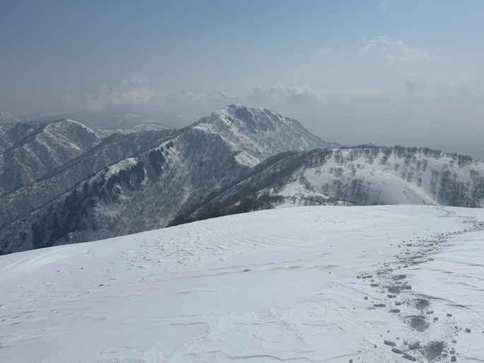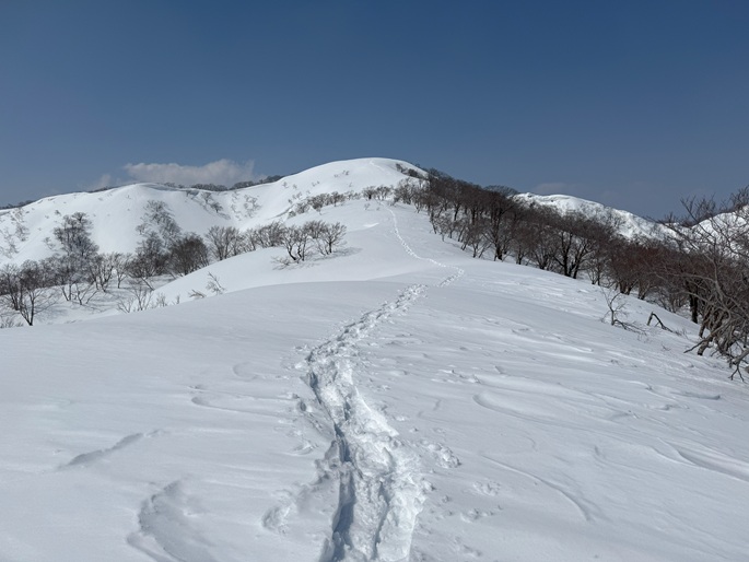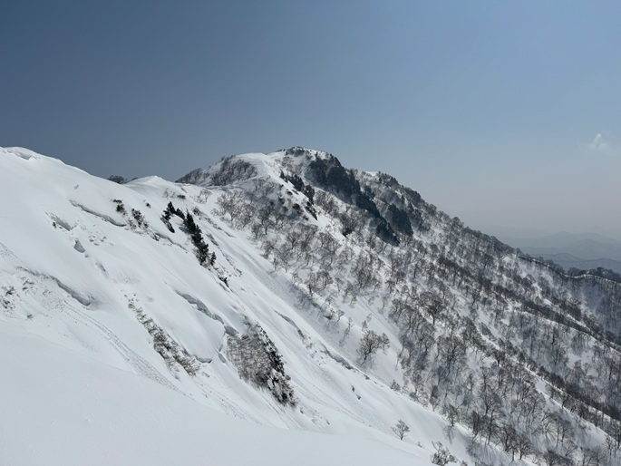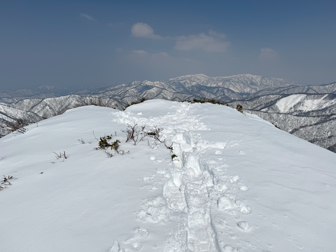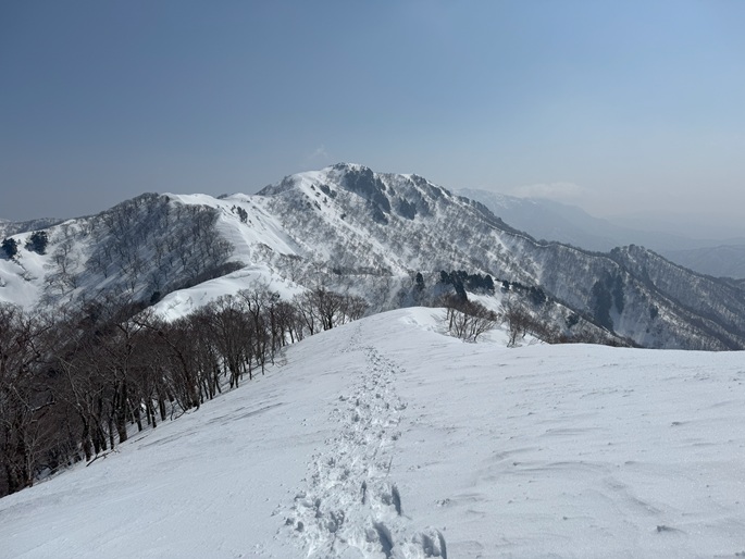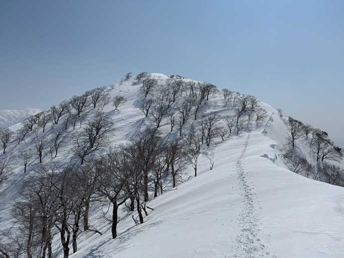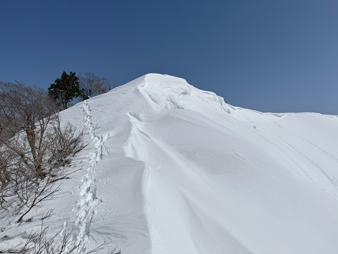 岐阜県揖斐川町・福井県大野市の若丸山(1285m*ぎふ百山)を登った。 令和5年に開通した冠山トンネルにより積雪期の冠山(1256m)へ多くの登山者が訪れるようになり、その恩恵で登山道がなく登頂が困難だった若丸山への登頂も容易になった。 今回は冠山も同時に登る予定だったが、運悪く若丸山への登頂時にスノーシューの前爪が折れてしまったので残念ながら登頂は叶わなかった。