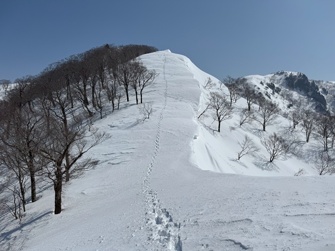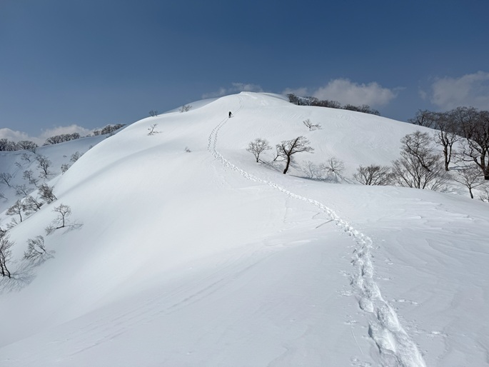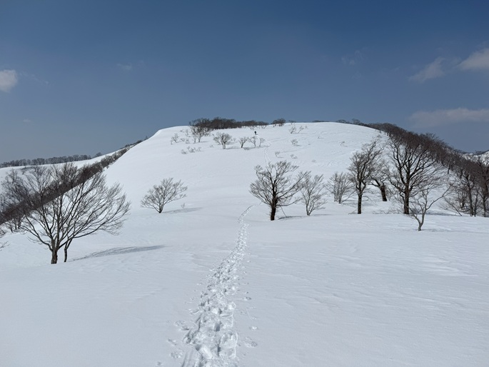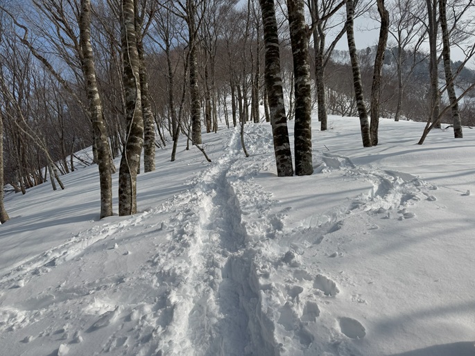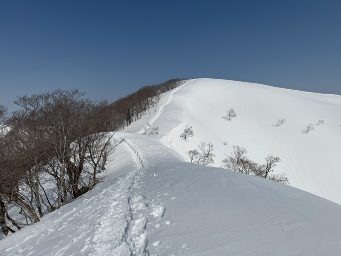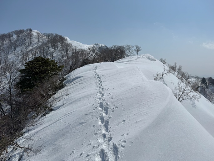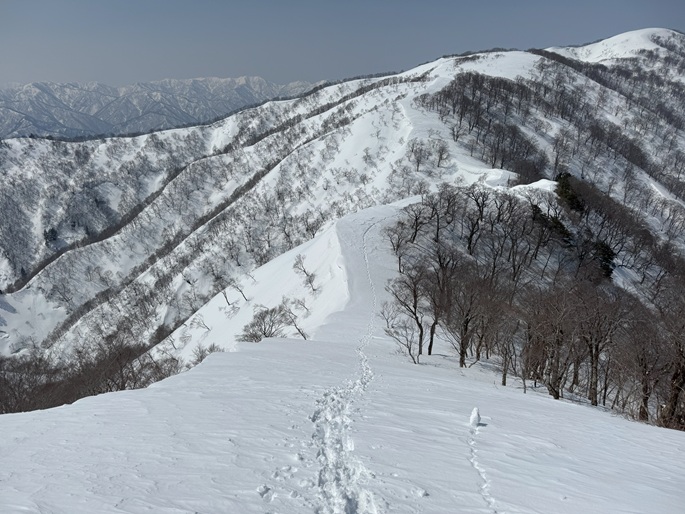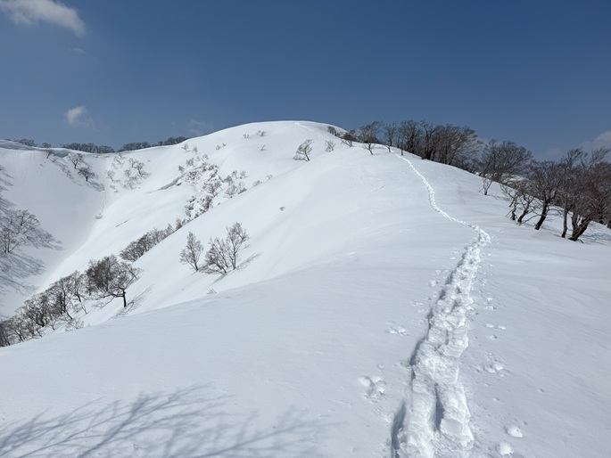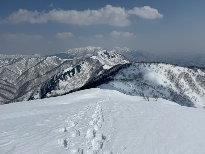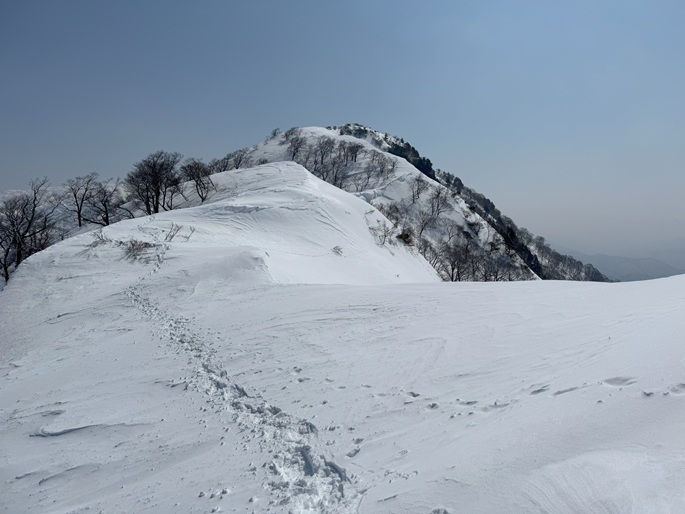 岐阜県揖斐川町・福井県大野市の若丸山(1285m*ぎふ百山)を登った。 令和5年に開通した冠山トンネルにより積雪期の冠山(1256m)へ多くの登山者が訪れるようになり、その恩恵で登山道がなく登頂が困難だった若丸山への登頂も容易になった。 今回は冠山も同時に登る予定だったが、運悪く若丸山への登頂時にスノーシューの前爪が折れてしまったので残念ながら登頂は叶わなかった。