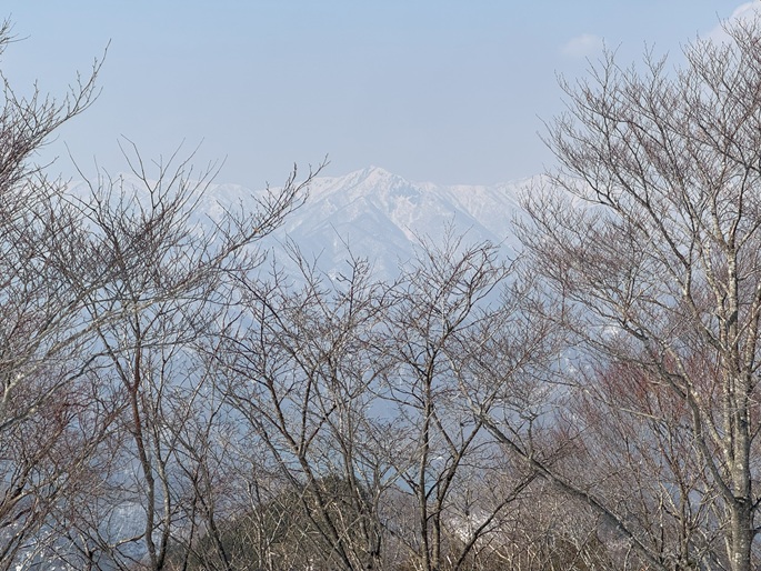 岐阜県揖斐川町の上谷山(1082m*ぎふ百山)を登った。 徳山湖の周囲に位置する山で、春霞ながら広い山頂からの展望は良かった。 地形図には記されていないが顕著な尾根に破線程度の登山道があるようで、急峻な山頂直下以外はとても登り易かった。
