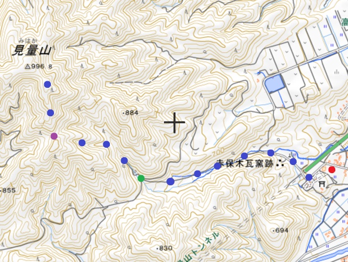 風土記の丘駐車場 〜 作業道入口 〜 峠 〜 見量山 (往復)