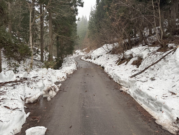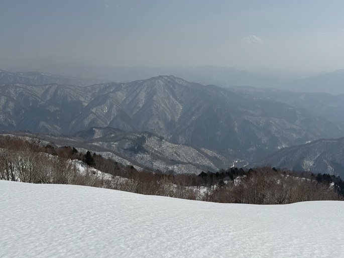 岐阜県飛騨市・高山市の桑崎山(1728m*ぎふ百山)を登った。 除雪終了点から取付きに向かう車道の途中では除雪作業が行なわれていた。 谷筋を登る登山道が地形図に記されているが、残雪期に人気がある山のようでトレースが予想以上に濃かった。 春霞と黄砂が酷かったが広い山頂の傍らからは笠ヶ岳や黒部五郎岳が望まれた。