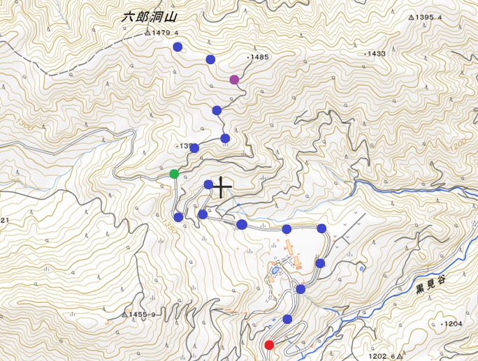 除雪終了点 〜 作業道入口 〜 尾根取付き 〜 六郎洞山 (往復)
