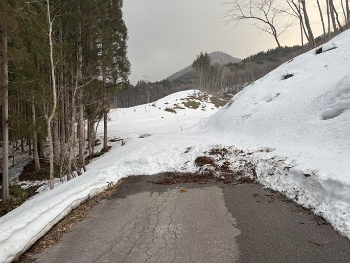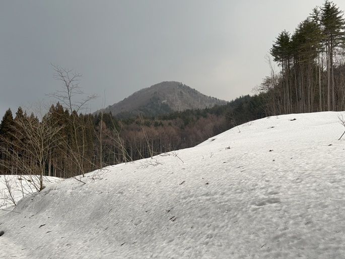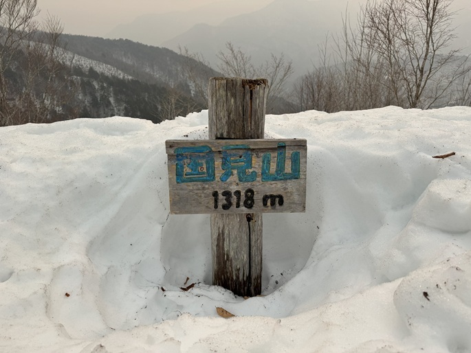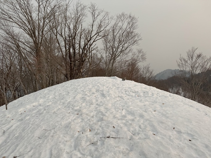 岐阜県高山市の国見山(1318m*ぎふ百山)を登った。 除雪終了点から1時間ほど車道を歩いて駒鼻峠からの登山道を登り、山頂からは残雪を利用して顕著な尾根を下って周回した。 無木立の山頂だったが、黄砂の影響で展望が得られなかったことが惜しまれた。