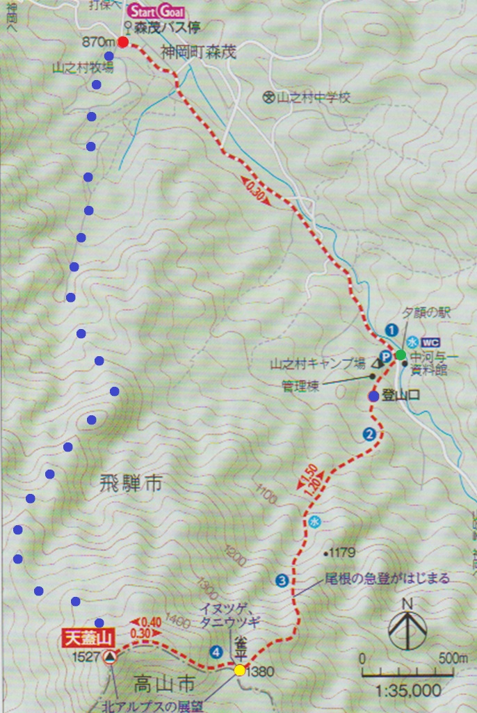 山之村牧場 〜 天蓋山 〜 雀平 〜 天蓋山登山口 〜 山之村牧場 (周回)