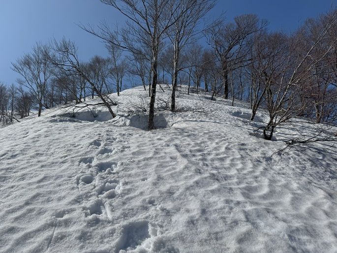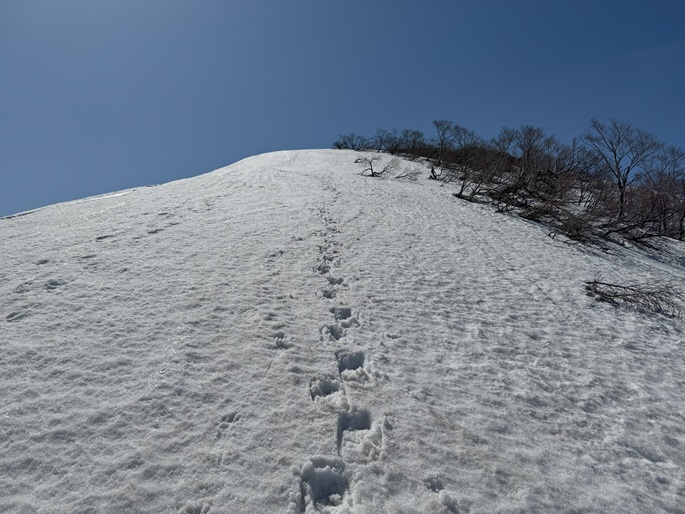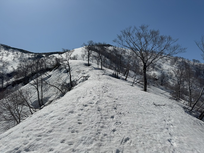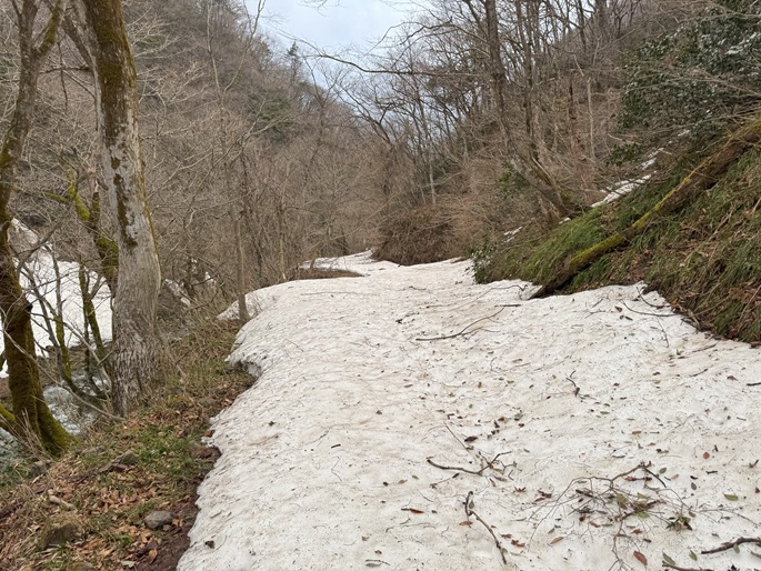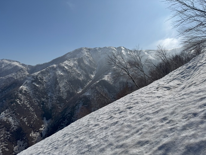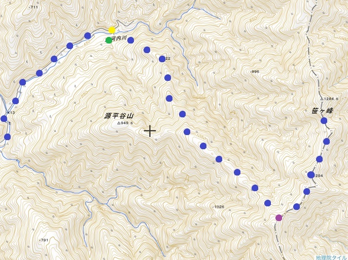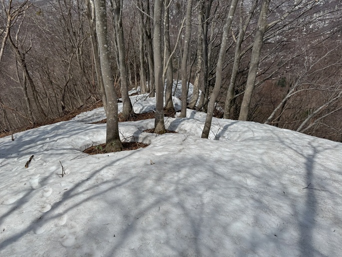 林道融雪点 〜 二ツ屋導水施設 〜 尾根取付き 〜 稜線出合 〜 笹ケ峰 (往復)