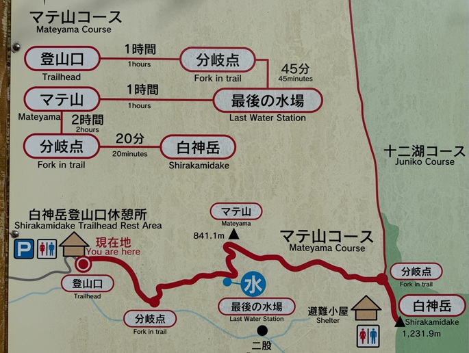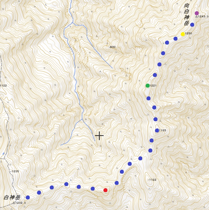 登山口 〜 蟶山分岐 〜 白神岳 〜 向白神岳 〜 三角点峰 (往復)